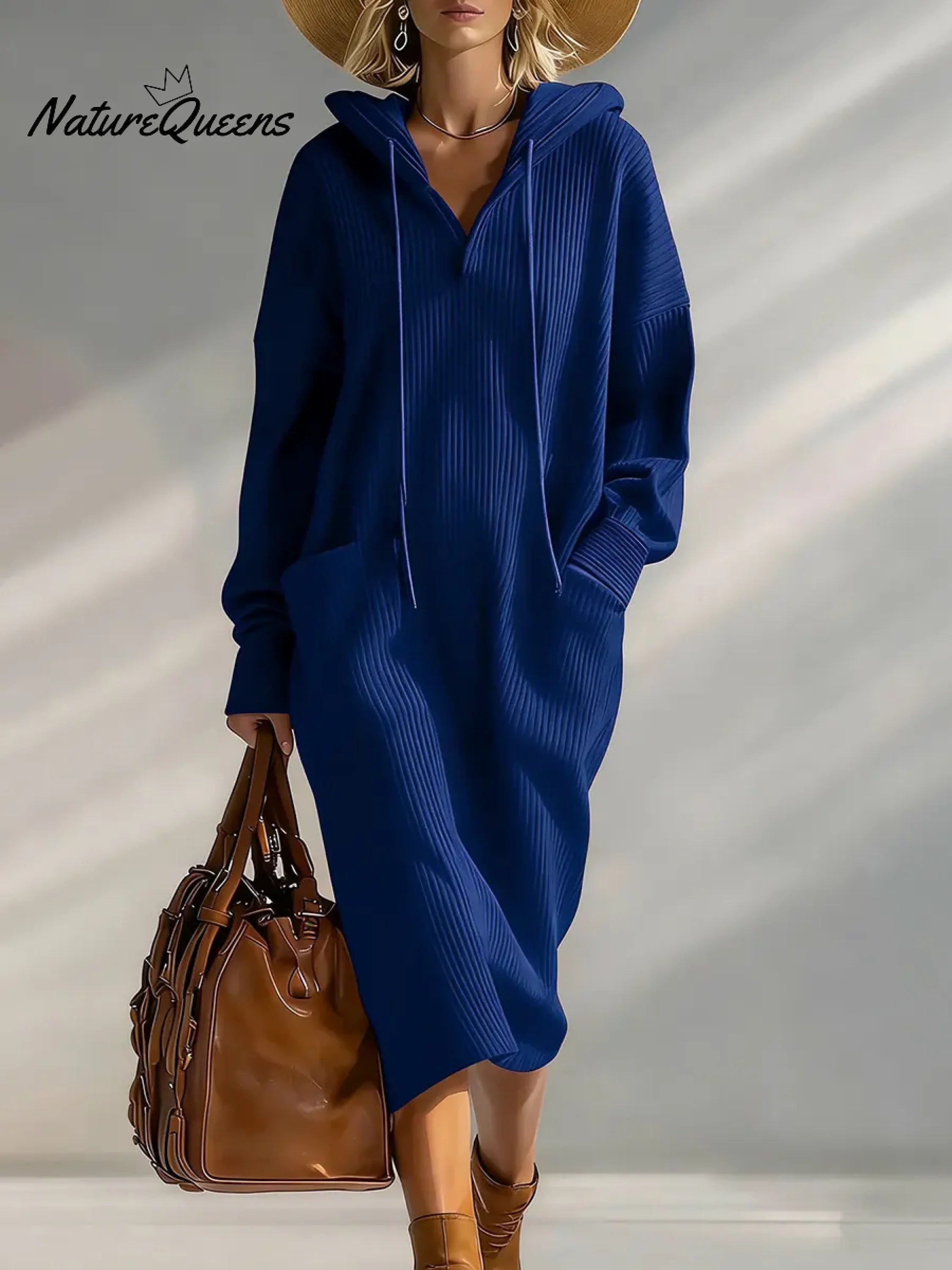 Women's Solid Color Long-sleeved Casual Loose Hooded Knit Dress