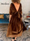 Women's Solid Color Round Neck Three-quarter Sleeve Loose Casual Velvet Dress