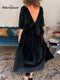 Women's Solid Color Round Neck Three-quarter Sleeve Loose Fit Satin Dress