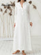 Women's Solid Color V-neck 3/4 Sleeve Casual Loose Cotton And Linen Dress