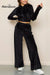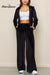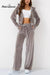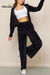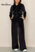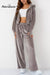 Solid Color Velvet Hooded Zip-up Sweatshirt and Elastic Waist Casual Pocket Straight-leg Pants Set