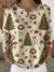 Women's Vintage Christmas Tree Bow Art Print Casual Pullover Sweater