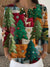 Women's Vintage Christmas Tree Bow Art Print Casual Pullover Sweater