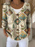 Women's Vintage Christmas Tree Art Print Casual Cotton Shirt
