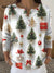 Christmas Tree Lantern Bow Gift Pattern Print Henley Neck Sparkling Sequin Sweater