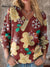 Women's Vintage Christmas Tree Art Print Casual Cotton Shirt