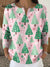 Women's Vintage Christmas Tree Art Print Casual Cotton Shirt