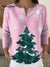 Vintage Christmas Tree Art Print Buttoned Cardigan Sweater