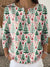 Women's Vintage Christmas Tree Art Print Casual Cotton Shirt