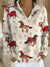 Vintage Christmas Dogs Art Print Casual Long Sleeve Zip Sweatshirt