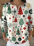 Women's Vintage Christmas Tree Bow Art Print Casual Pullover Sweater