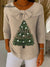 Women's Vintage Christmas Tree Bow Art Print Casual Pullover Sweater