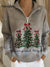 Vintage Christmas Tree Art Print Casual Long Sleeve Zip Sweatshirt