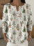 Vintage Potted Christmas Tree Print Henley Neck Sweater Top