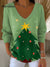 Women's Vintage Christmas Tree Art Print Casual Cotton Shirt