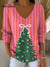 Women's Vintage Christmas Tree Art Print Casual Cotton Shirt