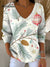 Women's Vintage Christmas Tree Art Print Casual Cotton Shirt