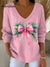 Women's Vintage Christmas Tree Bow Art Print Casual Pullover Sweater