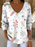 Women's Vintage Christmas Tree Art Print Casual Cotton Shirt