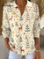 Women's Christmas Print Lapel Long Sleeve Casual Loose Knit Sweater