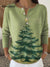 Women's Vintage Christmas Tree Art Print Casual Cotton Shirt