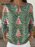 Women's Vintage Christmas Tree Art Print Casual Cotton Shirt