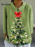 Women's Vintage Christmas Tree Art Print Casual Cotton Shirt