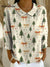 Women's Christmas Tree Art Print Casual Cotton And Linen 3/4 Sleeve Shirt