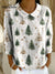 Women's Christmas Tree Art Print Casual Cotton And Linen 3/4 Sleeve Shirt