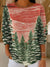 Women's Vintage Christmas Tree Art Print Casual Cotton Shirt