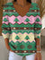 Women's Vintage Christmas Tree Art Print Casual Cotton Shirt