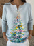 Women's Vintage Christmas Tree Bow Art Print Casual Pullover Sweater