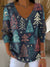 Women's Vintage Christmas Tree Art Print Casual Cotton Shirt