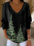 Women's Vintage Christmas Tree Art Print Casual Cotton Shirt