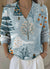 Women's Vintage Christmas Tree Art Print Casual Cotton Shirt