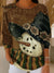 Women's Christmas Vintage Snowman Art Print Casual Pullover Sweater