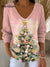 Women's Vintage Christmas Tree Art Print Casual Cotton Shirt