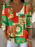 Women's Vintage Christmas Tree Art Print Casual Cotton Shirt