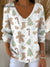 Women's Vintage Christmas Tree Art Print Casual Cotton Shirt