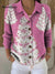 Women's Vintage Christmas Tree Art Print Casual Cotton Shirt