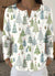Women's Vintage Christmas Tree Art Print Casual Cotton Shirt