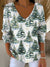 Women's Vintage Christmas Tree Art Print Casual Cotton Shirt