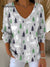 Women's Vintage Christmas Tree Art Print Casual Cotton Shirt