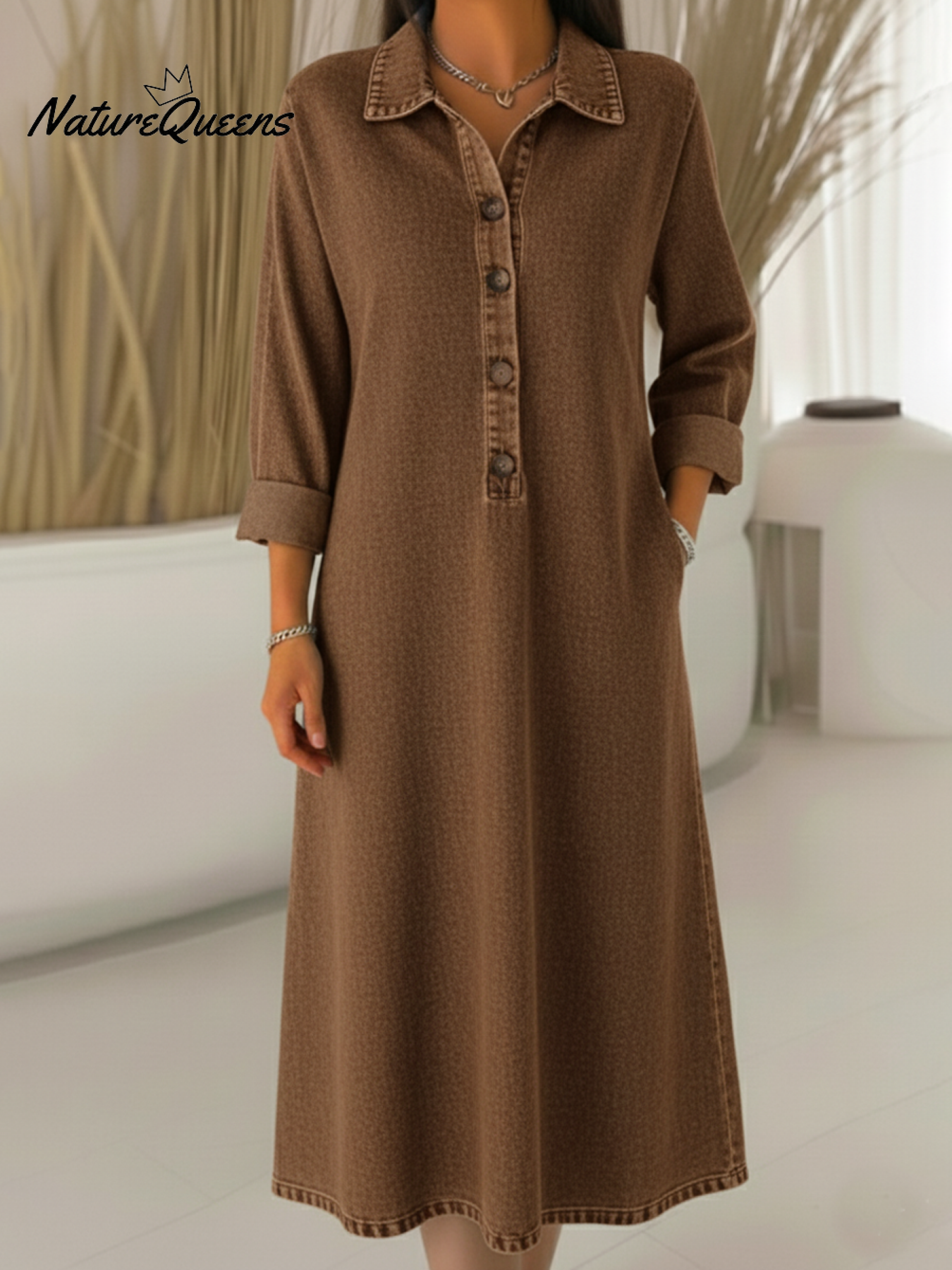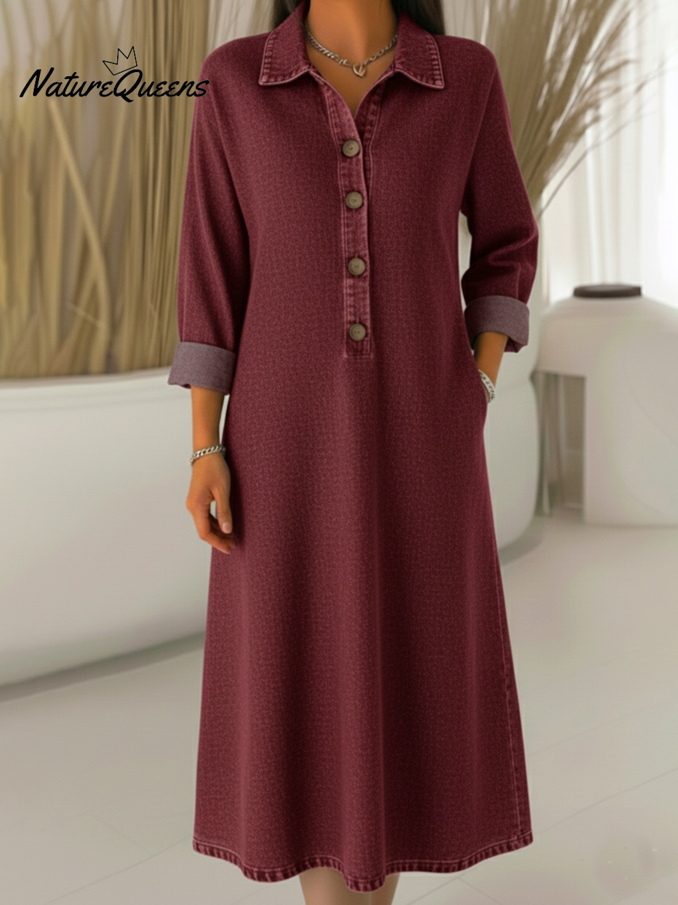 Classic Polo Collar Button-up Denim Dress