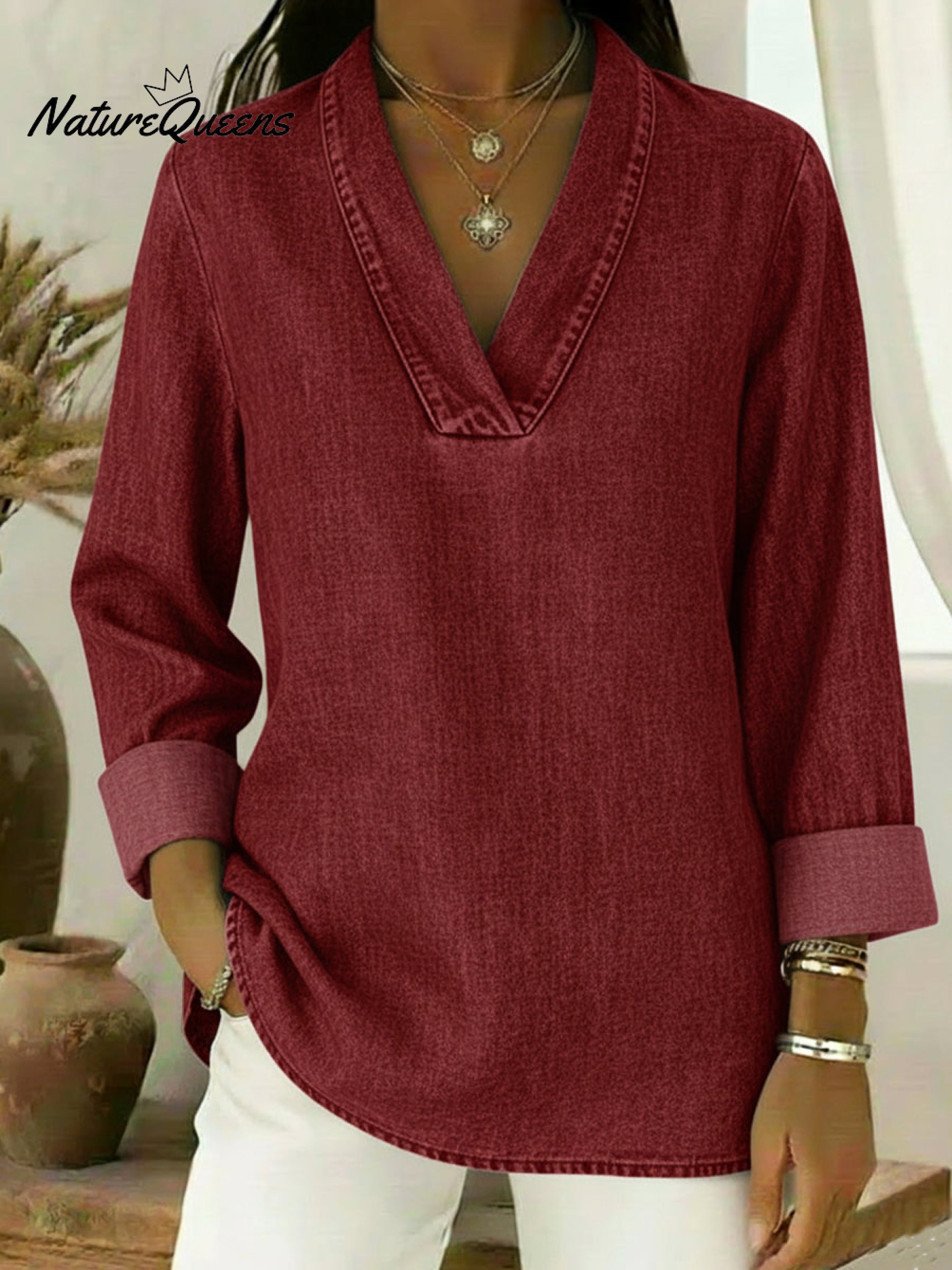 Vintage Shawl Collar Denim ShirtVintage Shawl Collar Denim Shirt