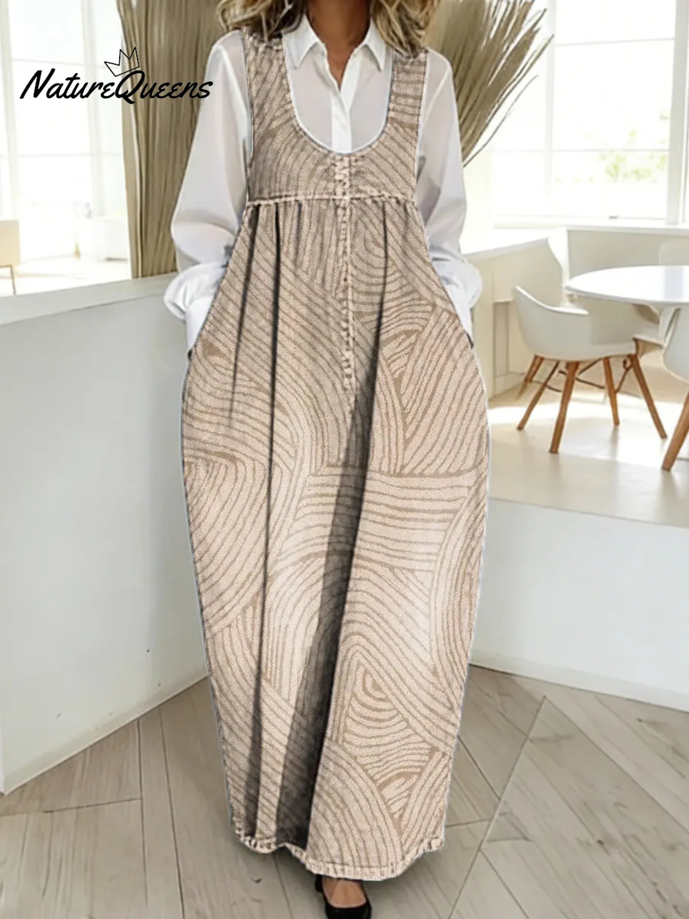Women's Abstract Line Pattern Art Print Casual Cotton Denim DressWomen's Abstract Line Pattern Art Print Casual Cotton Denim Dress