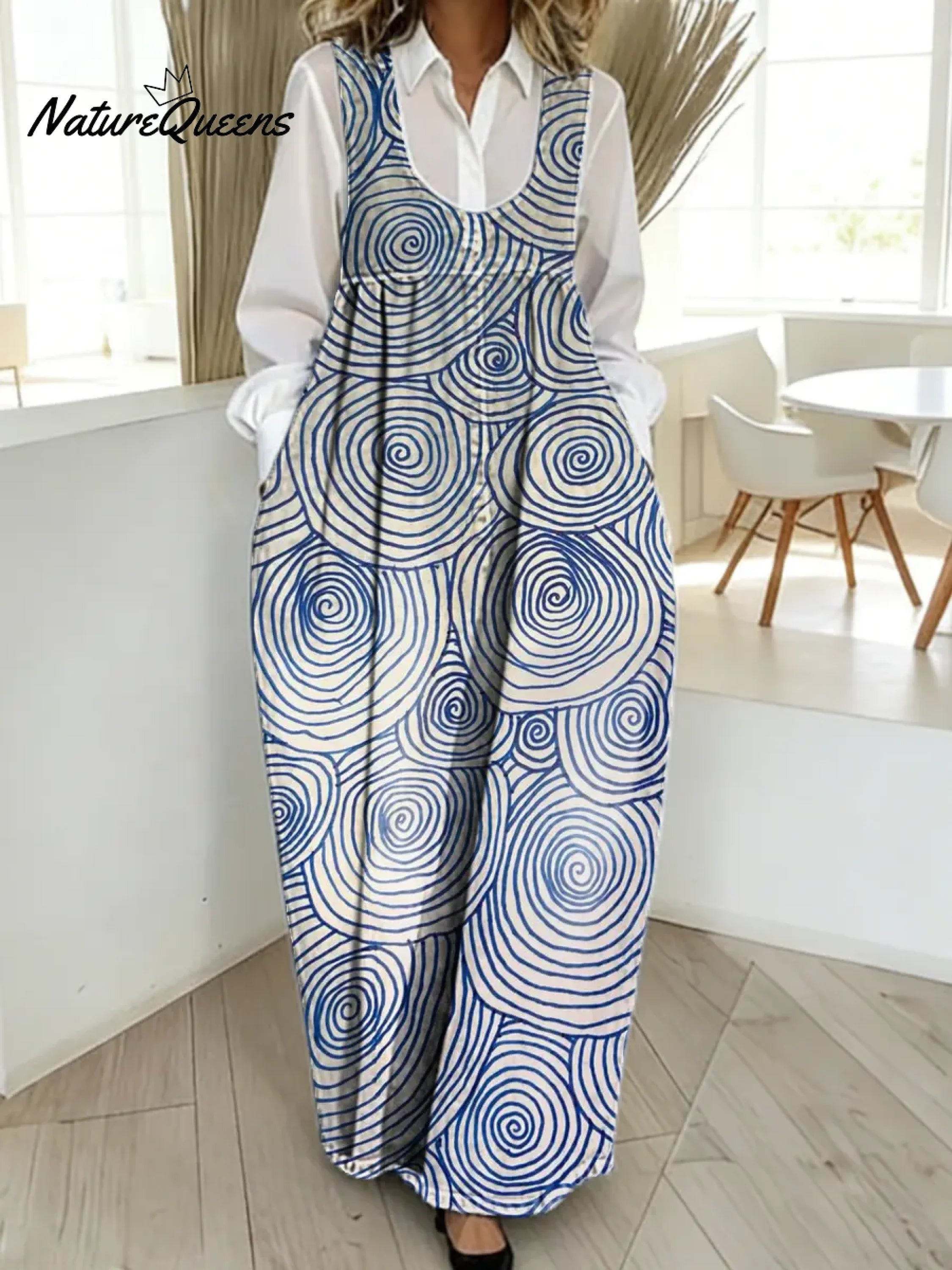 Women's Abstract Pattern Art Print Casual Cotton Denim Dress