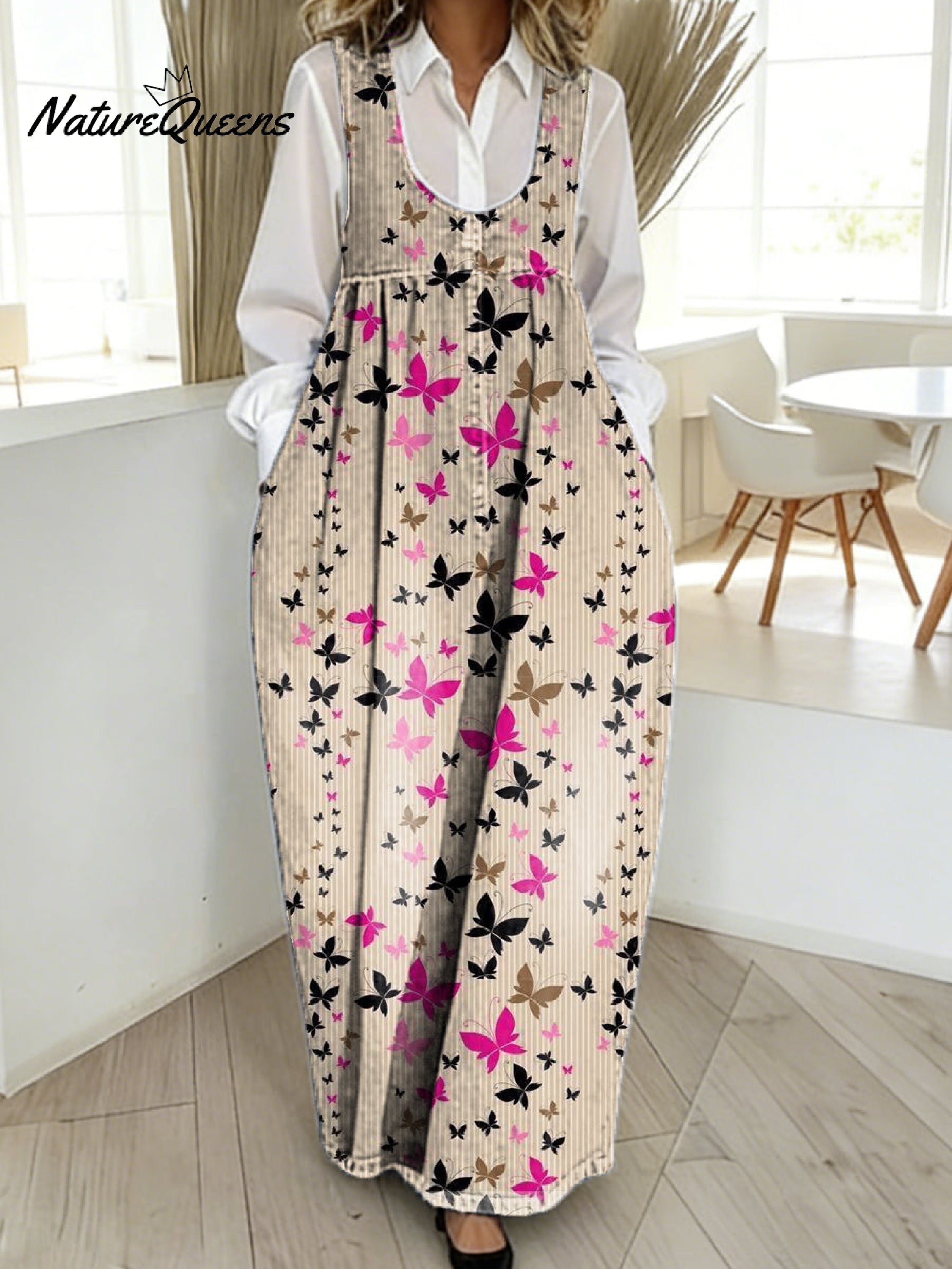 Women'sButterfly Pattern Art Print Casual Cotton Denim Dress