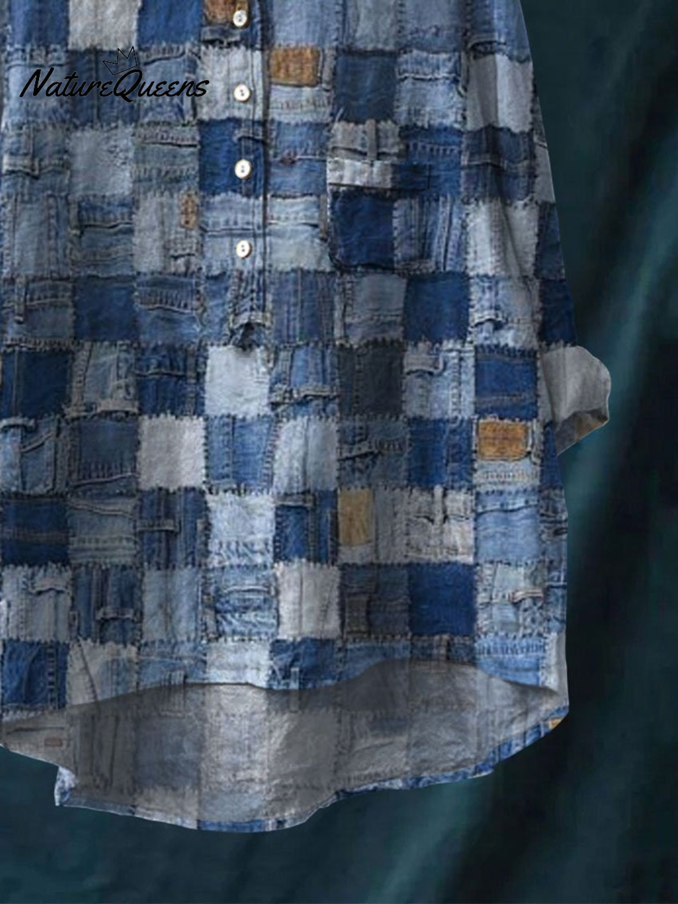 Women's Denim Art Print Casual Cotton And Linen Shirt