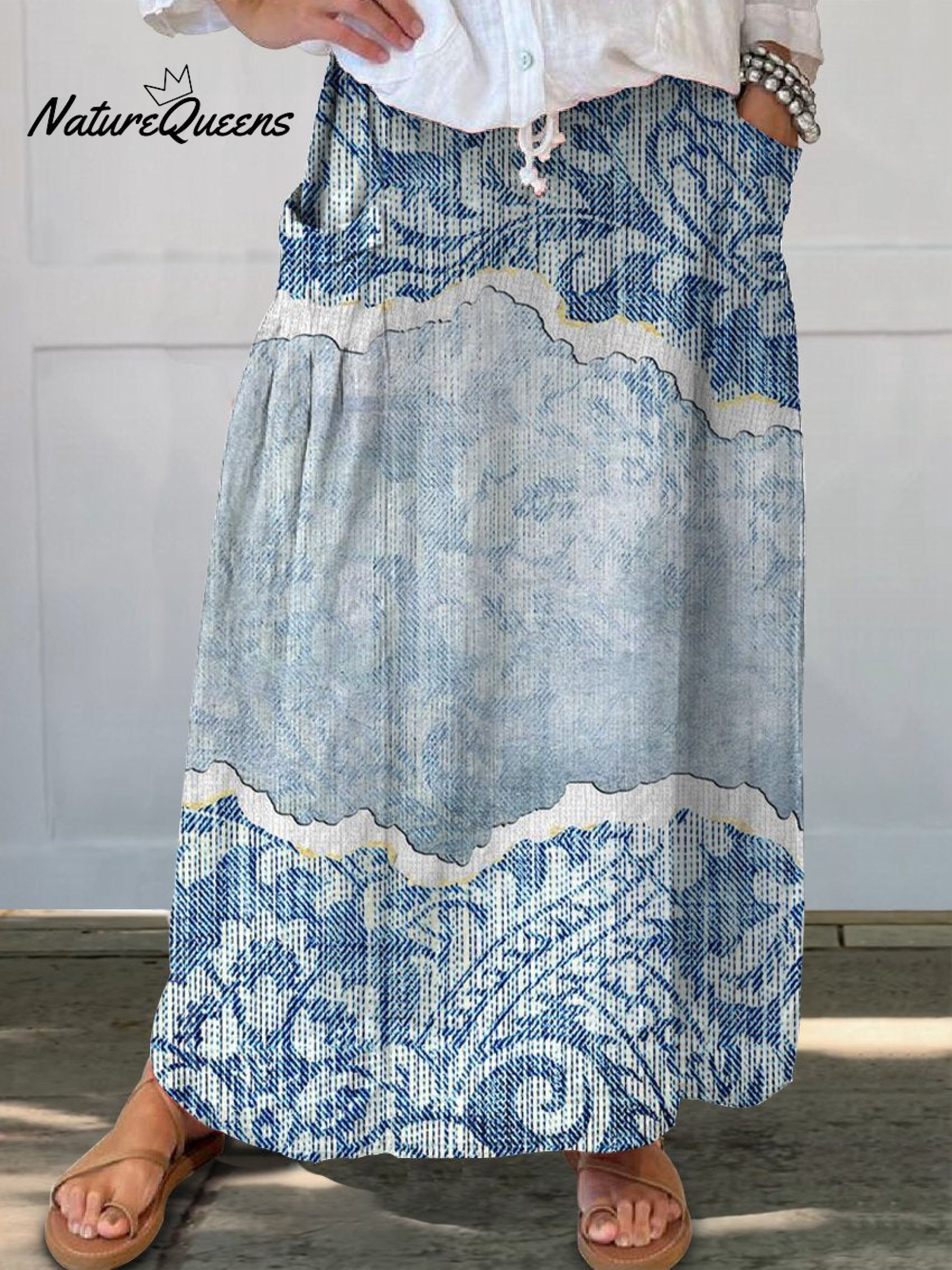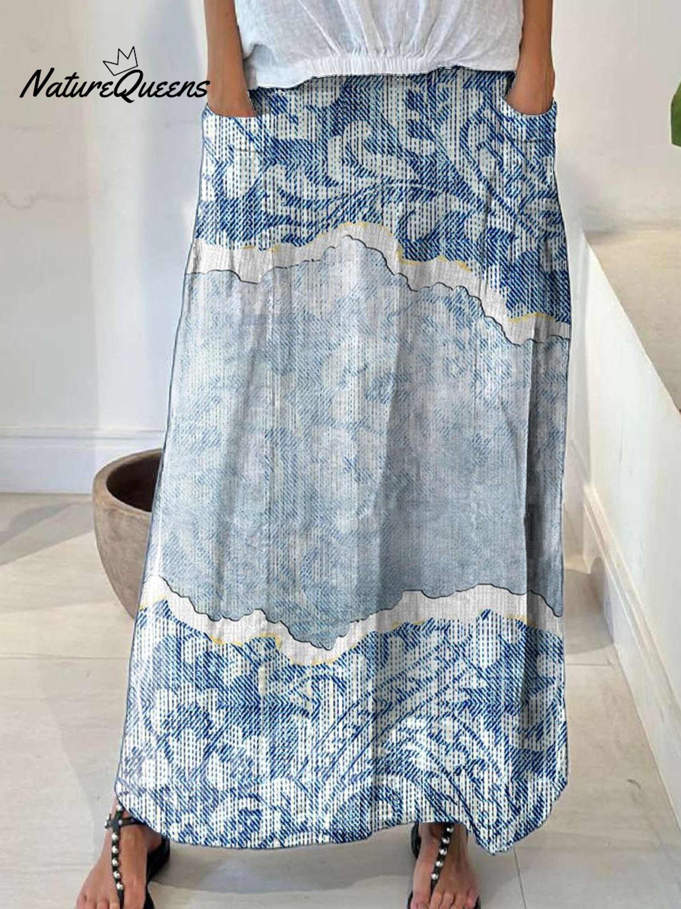 Women's Denim Texture Casual Print Linen Elastic waistband Pocket Skirt